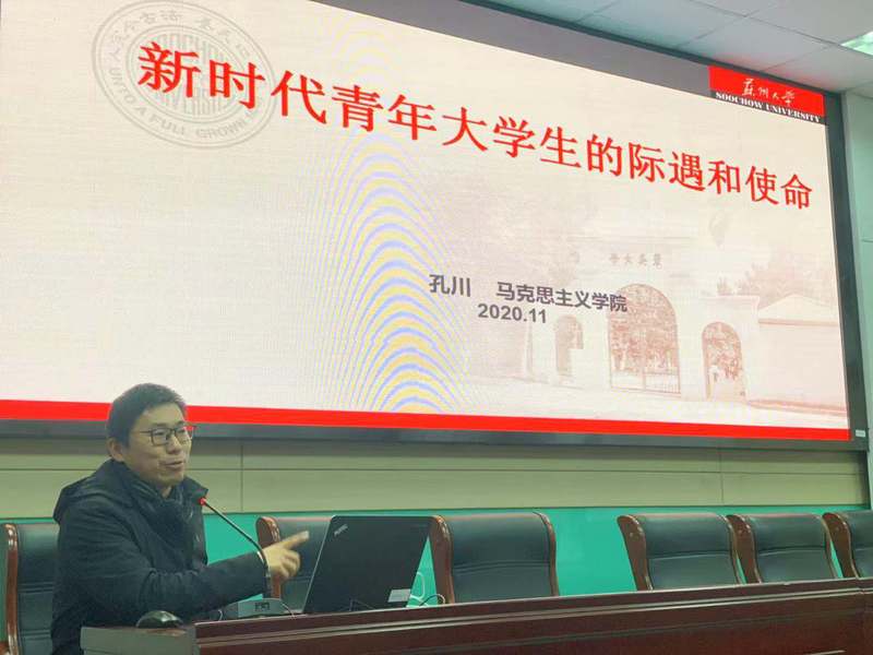 11月24日晚,在文辉楼220室,博彩平台 分党校邀请苏州大学马克思主义学院副教授、江苏高校学习宣传贯彻党的十九大精神巡讲团成员孔川老师,为博彩平台 第64期入党积极分子和第43期的预备党员,上了一堂“新时代青年大学生的际遇与使命”主题专题党课。